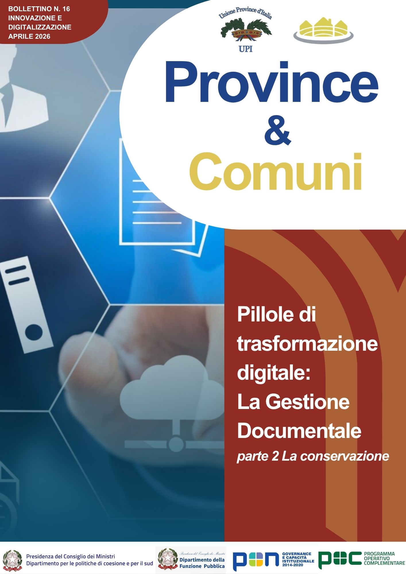 Pubblichiamo su Pi.Co. il sedicesimo numero della collana di Bollettini UPI, a cura dell’esperto nel settore Innovazione e Digitalizzazione nell’ambito del progetto strategico “Province&Comuni”, dal titolo: “Pillole di trasformazione digitale - La Gestione Documentale – parte 2 - La conservazione”.